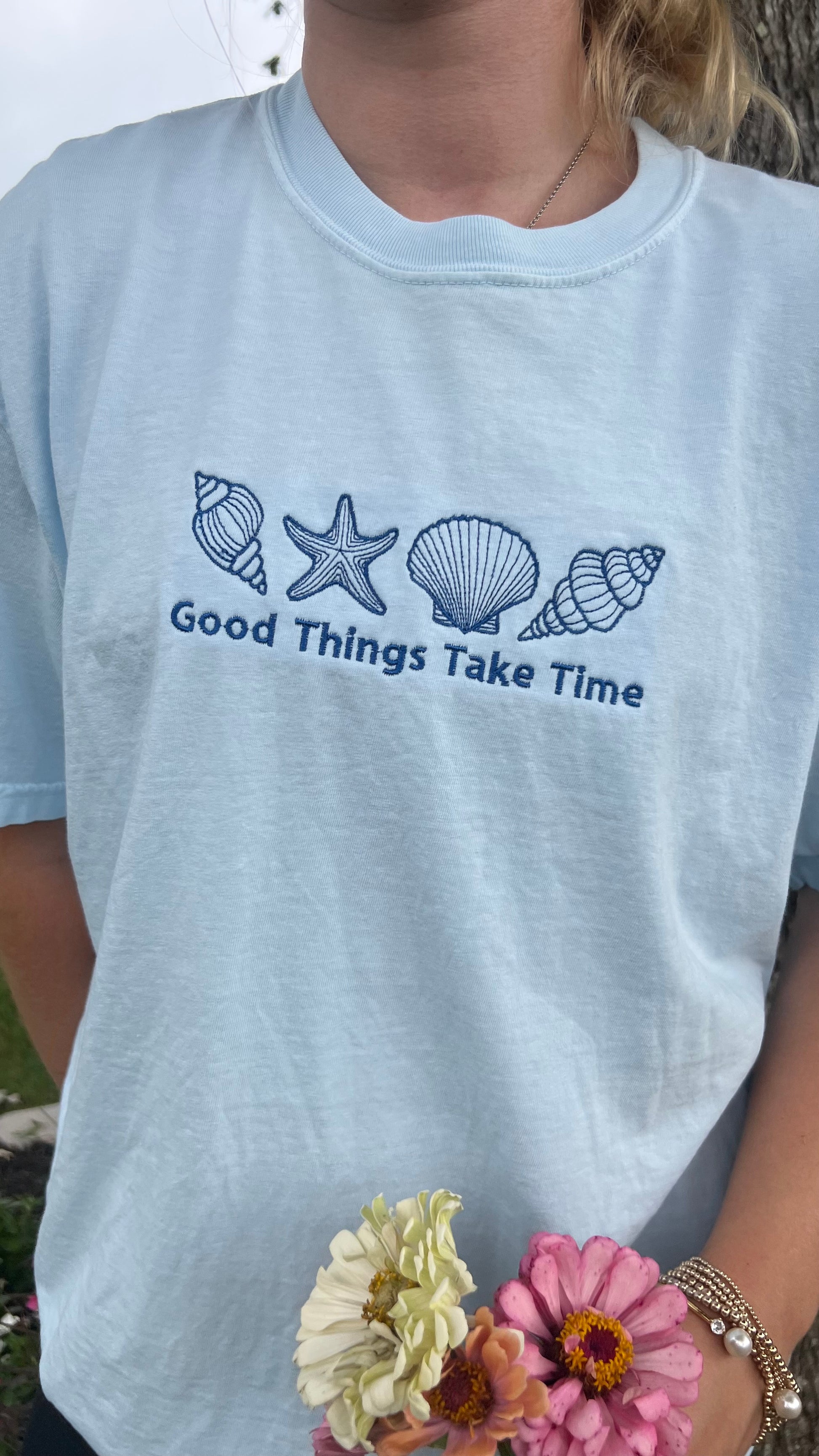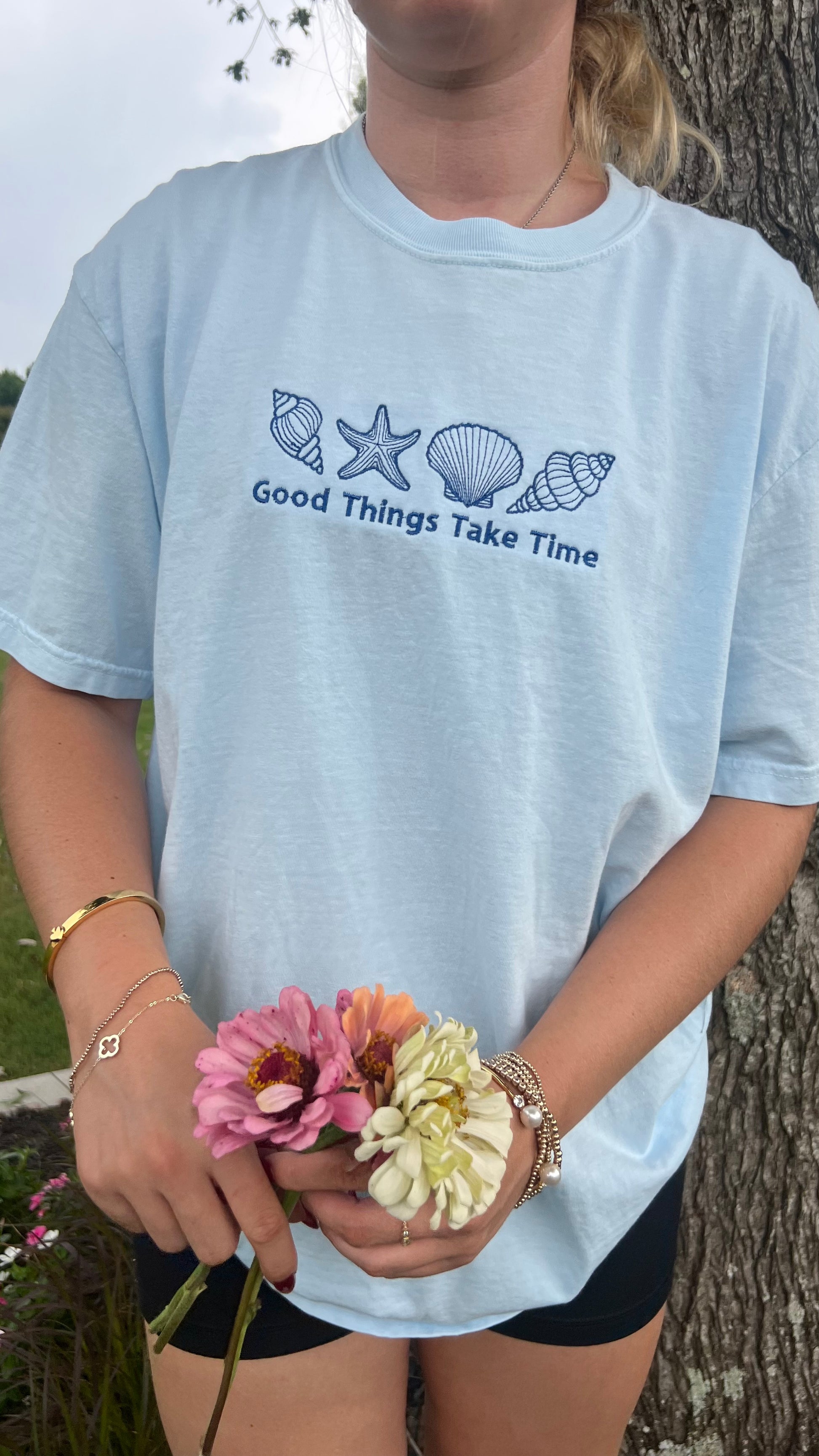 - Heavyweight comfort colors t-shirt with embroidered design.