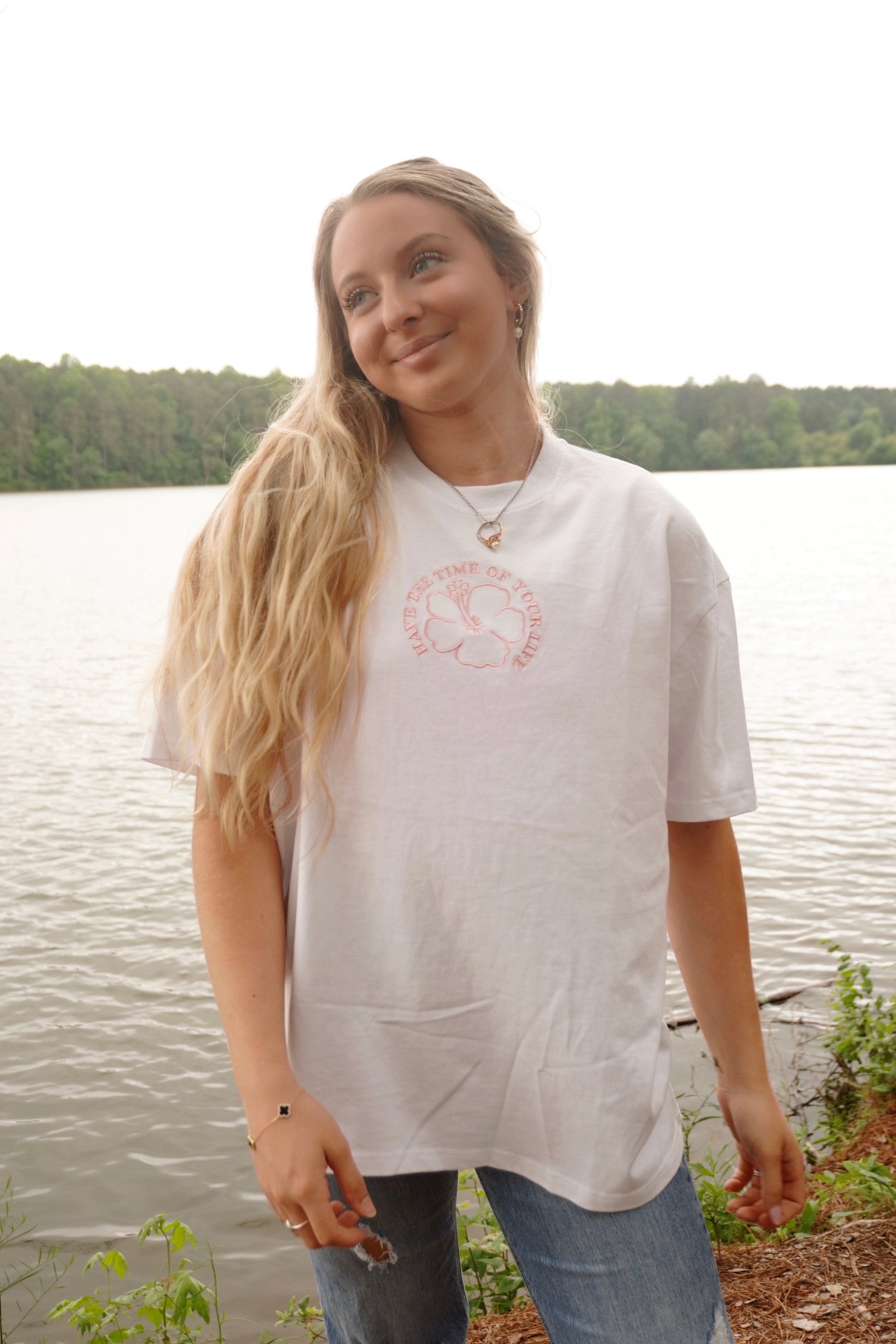 This tee is the perfect addition to your beachy wardrobe this summer! This shirt is soft and comfy with a wider fit. It is made from high-quality long-lasting materials for summers to come.