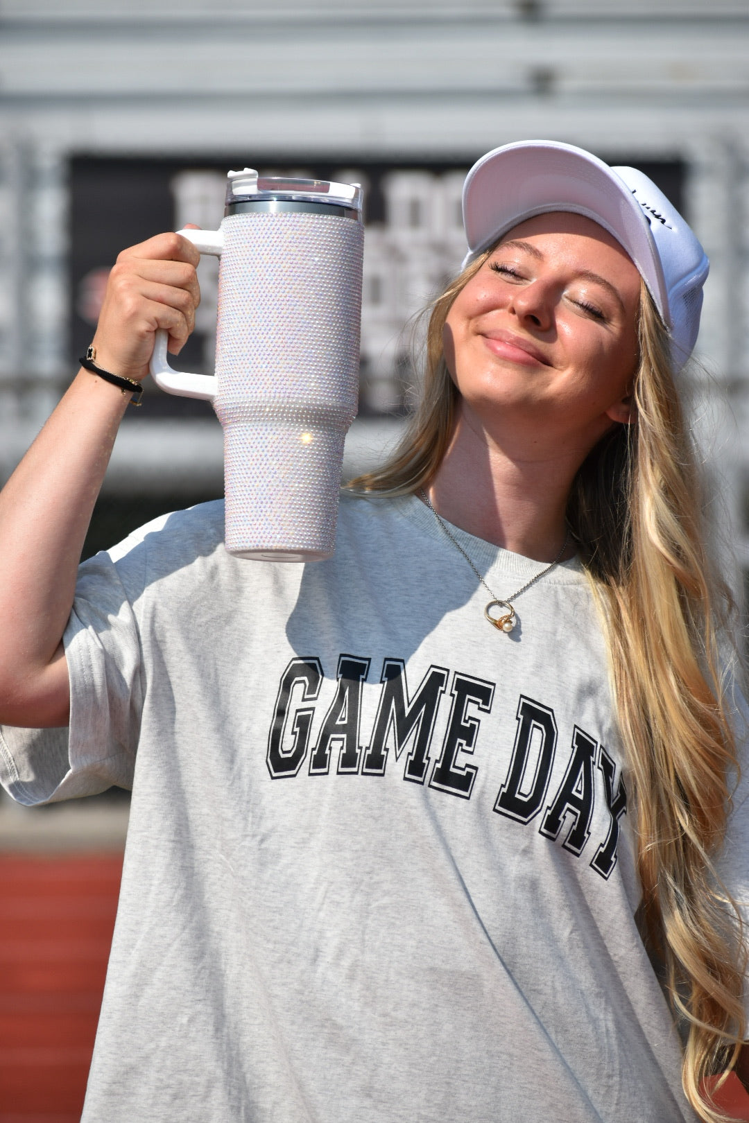 Add some sparkle to your day with this rhinestone tumbler. Prefect for everyday use and it fits in most cup holders!