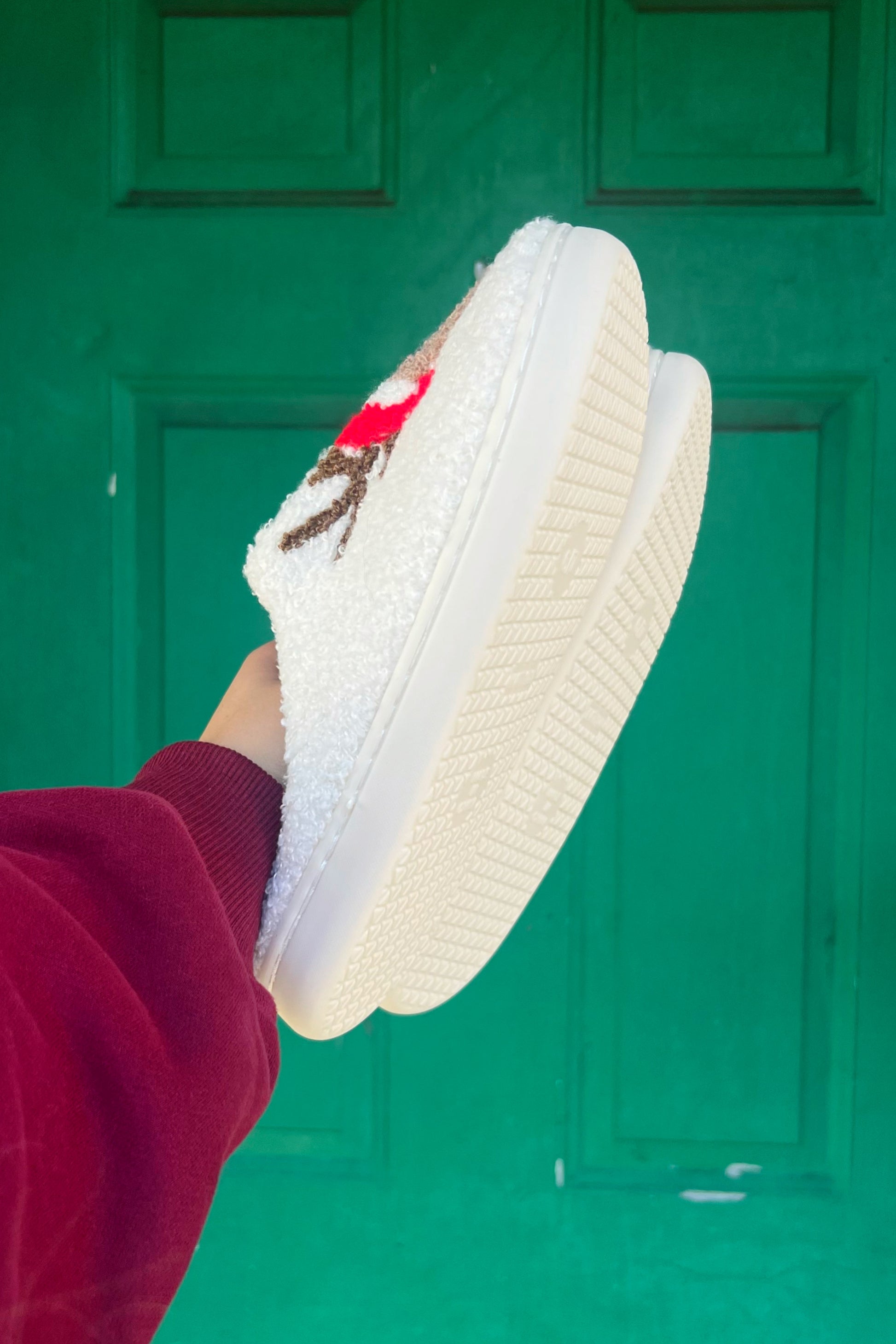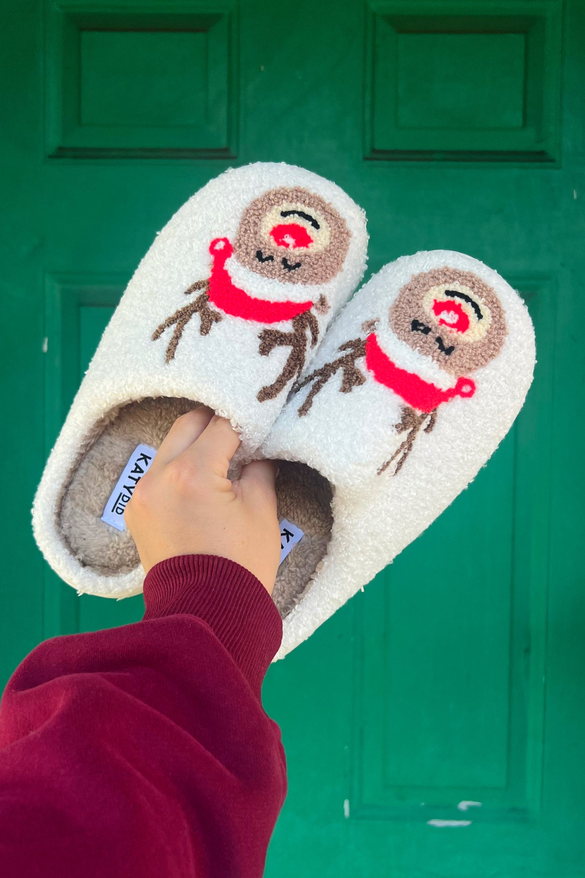 Make your feet happy with these comfy Reindeer Slippers. Featuring a soft cushion sole and a fun reindeer design, they are perfect for lounging around the house or even on vacation, however, they do have a hard bottom so you can wear them outside.